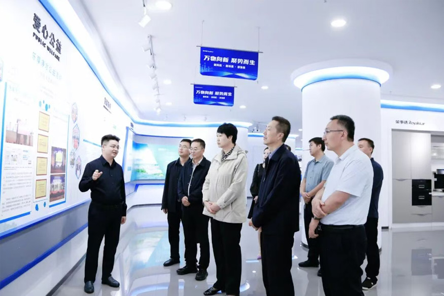 領導一行參觀公司全屋智慧凈水、管道直飲水、校園智慧飲水、單位/工廠直飲水等項目,了解公司在凈水行業全領域的發展情況。